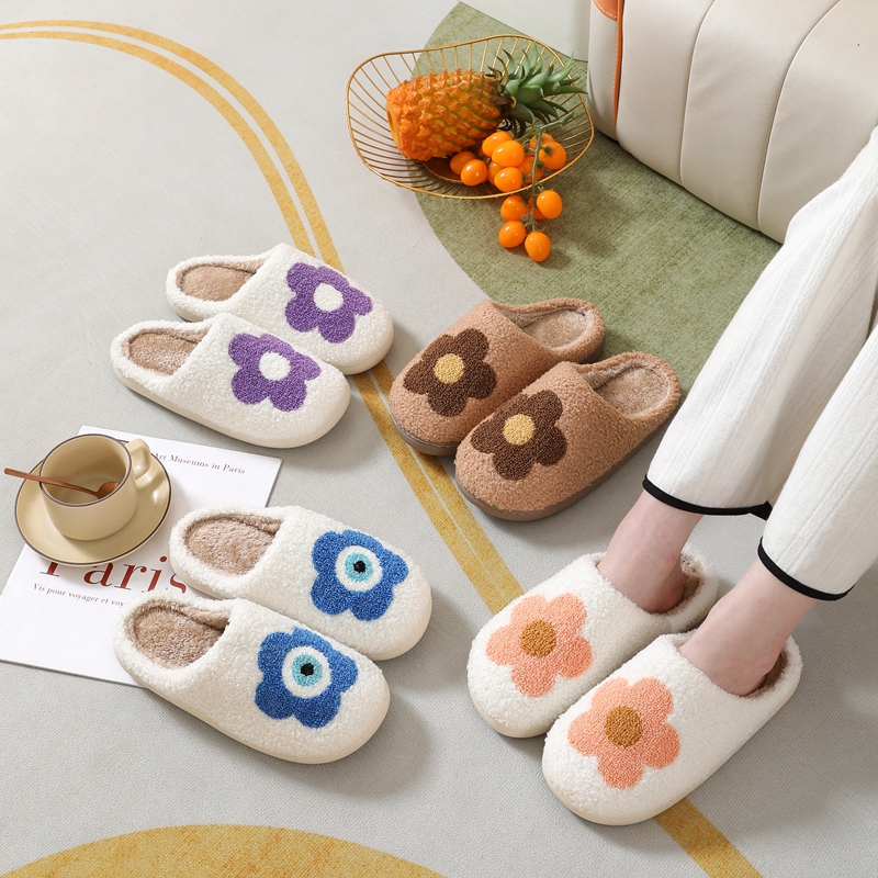 Women’s Blue Flower Evil Eye Winter Indoor Plush Slipper